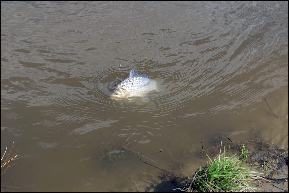Ловили на червя, и как обычно, первой начала клевать мелкая косатки. Но после того как закормили место, подошел карасик.