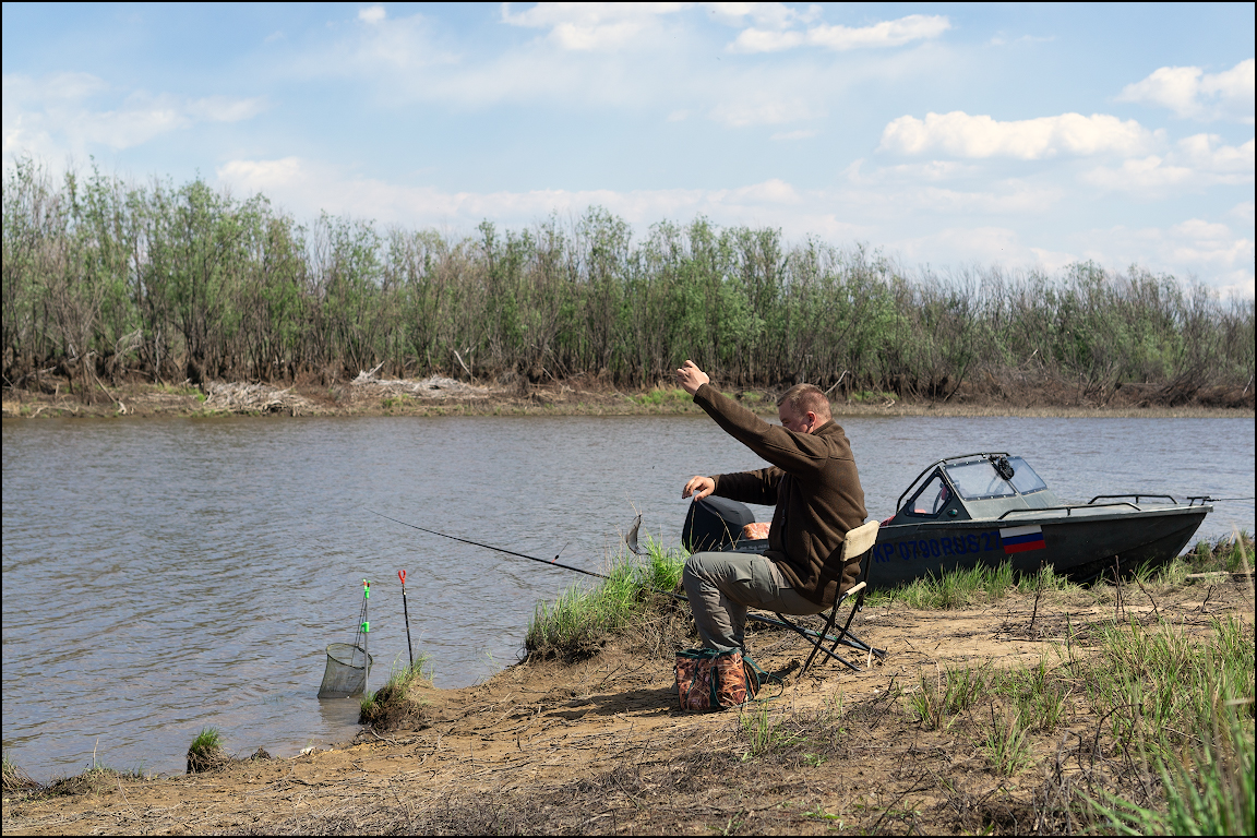 Все никак не получалось после окончания весенней охоты открыть сезон рыбалки по открытой воде. То одно, то другое. Сегодня, наконец-то, открылся. Прогноз погоды обещал на сегодня сильный северный ветер. В такую погоду в русле Амура делать нечего, поэтому решили с Тимофеем сгонять в одну из уютных Амурских проточек посидеть с удочками на карася.​