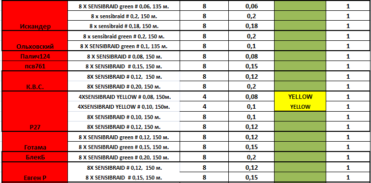 Саш, а чет у мну в конечной таблице 4X SENSIBRAID GREEN # 0,18 в названии стоит, просил 0,14?