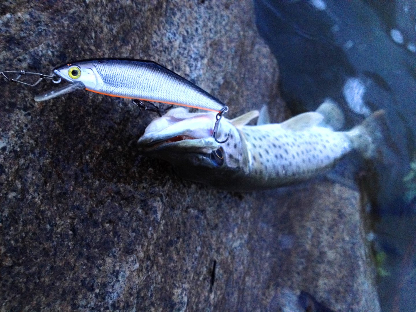 Так же наслышан был о "японском твичинге". Пишу в кавычках, потому что твич у нас и твич у японцев достаточно разные вещи. Я привык твичить концевой частью бланка, для этого лучше использовать быстрые спиннинги. Inter Boron XX позволяет хорошо твичить не крупные минноу, но работа бланка спиннинга немного отличается от привычной. С более упористыми и крупными воблерами бланк начинает проваливаться. То есть, до определённой степени нагрузки на бланк, сохраняет свойства присущие твичинговому спиннингу. Но как только эта нагрузка превышена, мы уже имеем не «воблерную рапирку», а форелевый «параболик» способный справиться с достаточно крупным трофеем. Вот это свойство спиннинга и подкупало. Часто бывало, что сбойной струе подсеченная рыба на жестком и быстром спиннинге рвала губу и сходила, а Inter Boron XX должен был позволить справится с рыбой в подобной ситуации.
