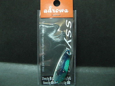Цвет - на серебрянном теле, половина блесны оттеняется зеленым цветом, и разделяется синей полосой. Всё усыпано небольшим количеством крупных блесток.