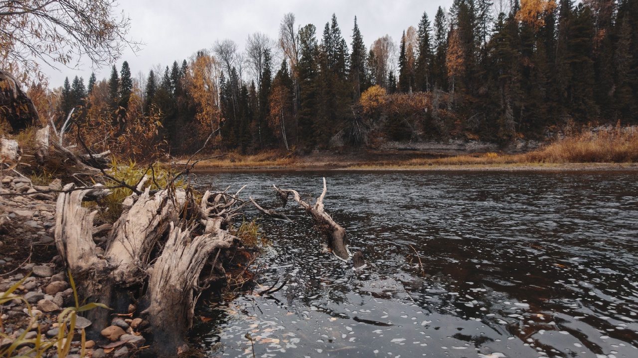 плесам при входе в перекат. Струи и свисающие ветки возле береговой линии, где течение образовывает углубление.