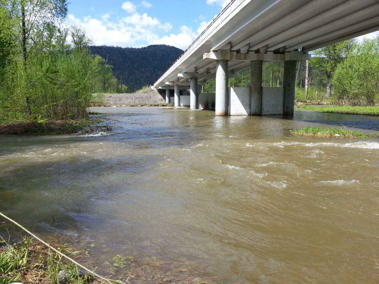 Кому интересно, Анюй в районе моста по Комсомольской трассе вне берегов, низменность вокруг подтоплена, Даур тоже залил поля вокруг. Вода не сказать чтоб сильно, но мутноватая.