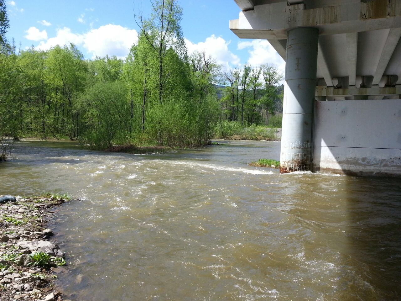 Смотрю на фото и сам себя успокаиваю. Прошло же 5 дней, гребень паводка наверное прошел, дождей серьезных небыло... А мозг сверлит , что зима была очень снежной и сколько еще снегу таять и когда этот пик пройдет никому не извесно. С другой стороны если сейчас не ехать, то ждать до следующего выезда придется месяц, а там вода нагреется, рыб по ключам разбежится и тд и тп.... Но решение принято - едем однозначно. Потомучто город задолбал уже в доску, организму требуется перезагрузка. Всё равно на уху поймаю, да и не поймаю с голоду не сдохнем. Кто ищет тот всегда находит. И есть еще одна поговорка хорошая: " Зубов бояться - в рот не давать!"