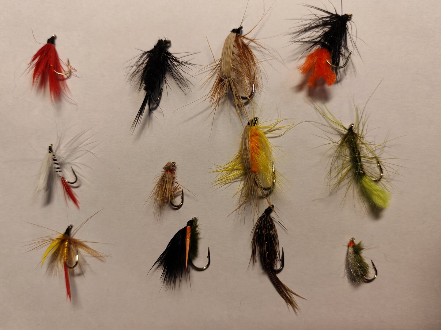 Приветствую. Все мухи на которые рыбачу, вяжу сам. Заметил, что размер крючка верховых, особо на размер рыбы не влияет. На мелкий крючок замечательно и крупный хариус клюет, а мелочь и на большой попадается. Ну а на ленка немного другие мухи и размер 8-10. В этом году поленился верховые вязать, купил на Алике набор в пластиковом боксе за 1000р, и на удивление замечательно отработали. Мухи довольно качественные, есть в наборе и на хариуса и на ленка. На Выборгской, на рынке есть один магазинчик, вот там огромный выбор мух, по моему такие наборы точно есть. Кроме того, много всякого что продаётся в наших магазинах. К примеру купил в одном известном магазине набор походной посуды за за 5 или 6т. рублей, а там такой же за 2 - 3 продается. Если надо, выложу фото набора мушек.