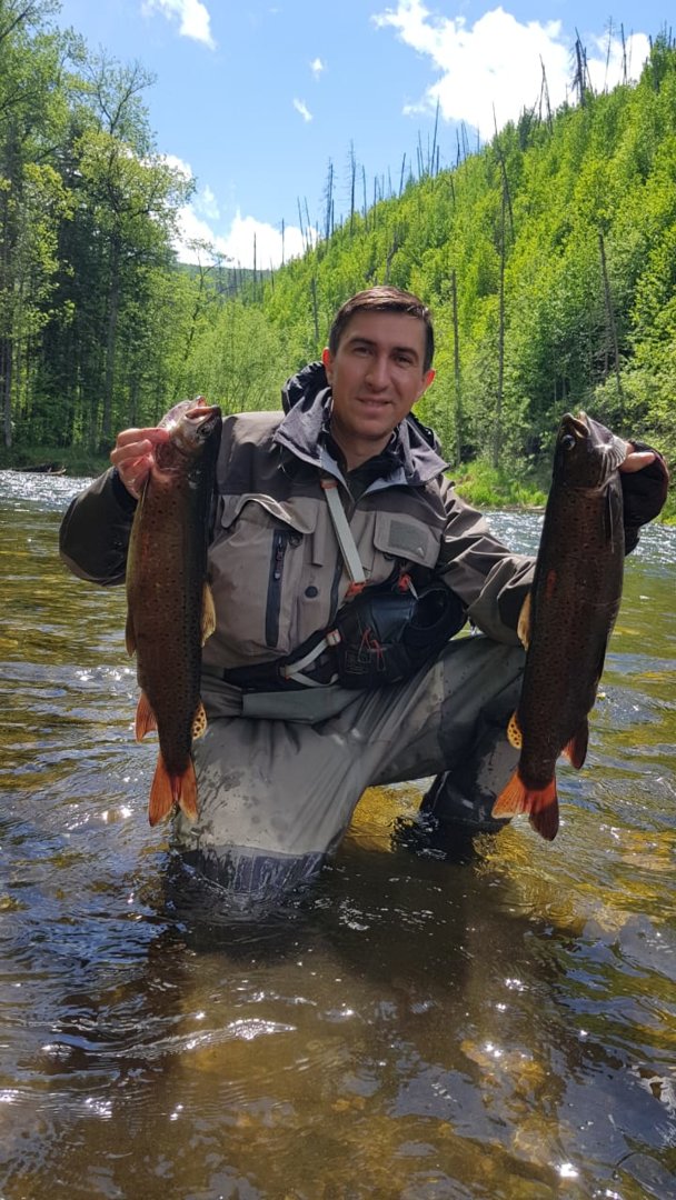 Всем привет! На июньские праздники ездили на Анюй через Аркаимовский мост, поднимались до слияния с Зауром, где и стоял наш табор. Вода была средняя, чистая. В один из дней ездили по Зауру до "кирпичей", рыбалка трудовая, Хариус ловился некрупный. В другой день поднимались в верх по Анюю от слияния с Зауром, рыбалка также была трудовой, рыба капризничала. В основном русле ловилась рыба крайне не охота. Постоянно менялась погода, то дождь, то солнце. Но думаю проблема не в этом. Рыба стояла в ручьях. Приманки брала крайне не охотно, но гоняла воблеры со всех сторон. Бодать и сопровождать воблеры и блёсны вылетало порой по 5-7 Ленков одновременно. При этом поймано было достаточно. Ленок весь мерный около 2 кг. Самого большого поймал на 3700 в небольшом притоке, с высоко берега его было видно, как он стоял на входе с переката в ямку. На заросшем ручье шириной в 2 м поймать такого монстра в отвес с высокого берега на D-Contact 50 одно удовольствие. Воблер опустил в перекат и сплавил его под нос Ленку. На втором продёргивании речной Леопард зажрал воблер полностью. Чтоб достать его, пришлость лездь в воду. Провели время прекрасно, в замечательной компании интересных и весёлых друзей. На обратной дороге встретили очень большого бурого медведя, переходил дорогу недалеко от Аркаимовского моста, между табором рыбаков на реке и дорожниками. Переходил вольяжно, непугаясь шум машины с прицепом. Чувствует себя хозяином!? Всем трофейных рыбалок!