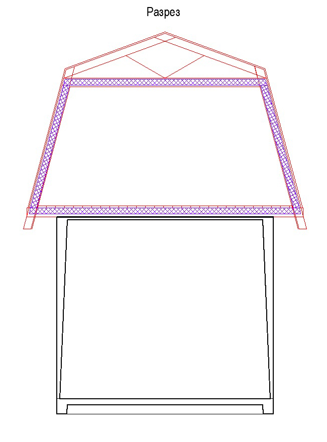 Я к тому, что обвязку (раму) я бы сделал из доски 180(150)х50мм - "на ребро". Основной набор рамы - поперёк гаража, чтобы в этом направлении рама была неразрезная, то есть - максимально несущая и перераспределяющая нагрузки. В раму заложил бы утеплитель (100-120мм ПСБ-С или мн. ваты жёсткими матами + пропенка баллонами пены (естессно - пароизоляция, продухи - как положено. Каркас кровли вобрал бы из 150(120)х50мм, в каркас кровли/перекрытия также вложил бы утеплитель - естессно - с пароизоляцией и вентиляцией. По стропилам - обрешётка + металлочерепица. Конёк - вентилируемый (для просушки утеплителя), подшивка свесов - металлосайдинг (с продухами для воздуха). Торцы (фронтоны) кркасные, как и кровля/стропила, с утеплителем/пароизоляцией, обшивка - металлосайдингом. Я тут черканул план/разрез щаз - как мне видится наипростейшее исполнение: чОрным - блок, красным - "верх", фиолетовым - утепление. Схема, без деталировки...
