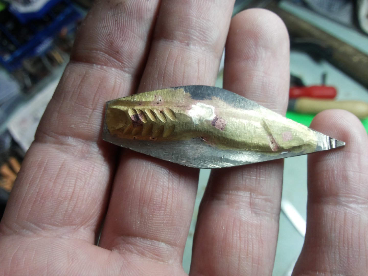 ... быть или не быть , вот в чем вопрос ? Проблема лопаток осталась . С дерева не плохо получается , но от ударов об дно , отлетает смола, кромка лопатки мочалится , естественно будет впитывать воду .
