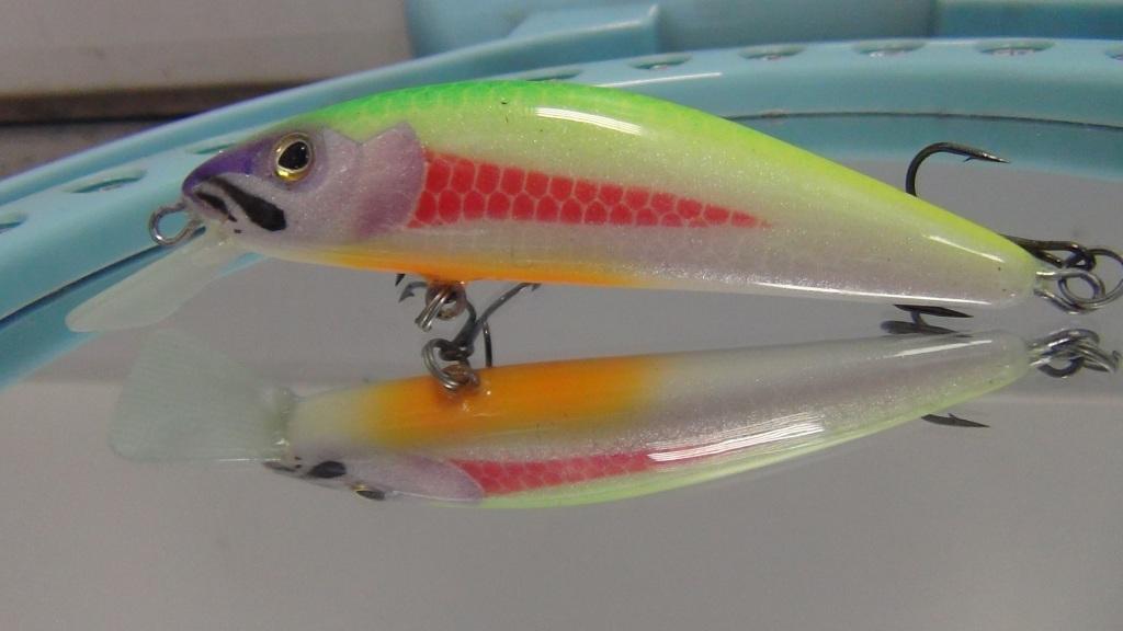 Общем воблеры в 60-70кузове по гольцу отработали хорошо. Не могу сказать что они ловят лучше заводских, но д-контакту по уловести не уступили, возможно уступили только риджу 70. Цвета работали все, но кислота и зелень была в приоритете. Будем работать над ошибками.