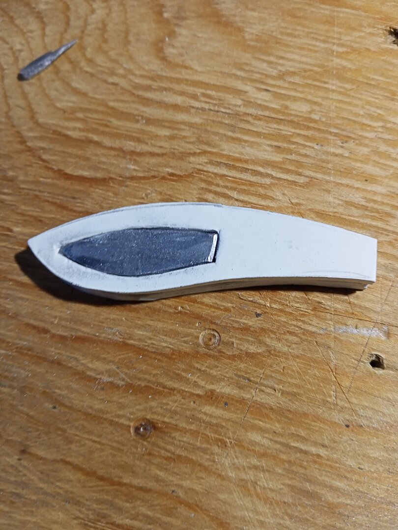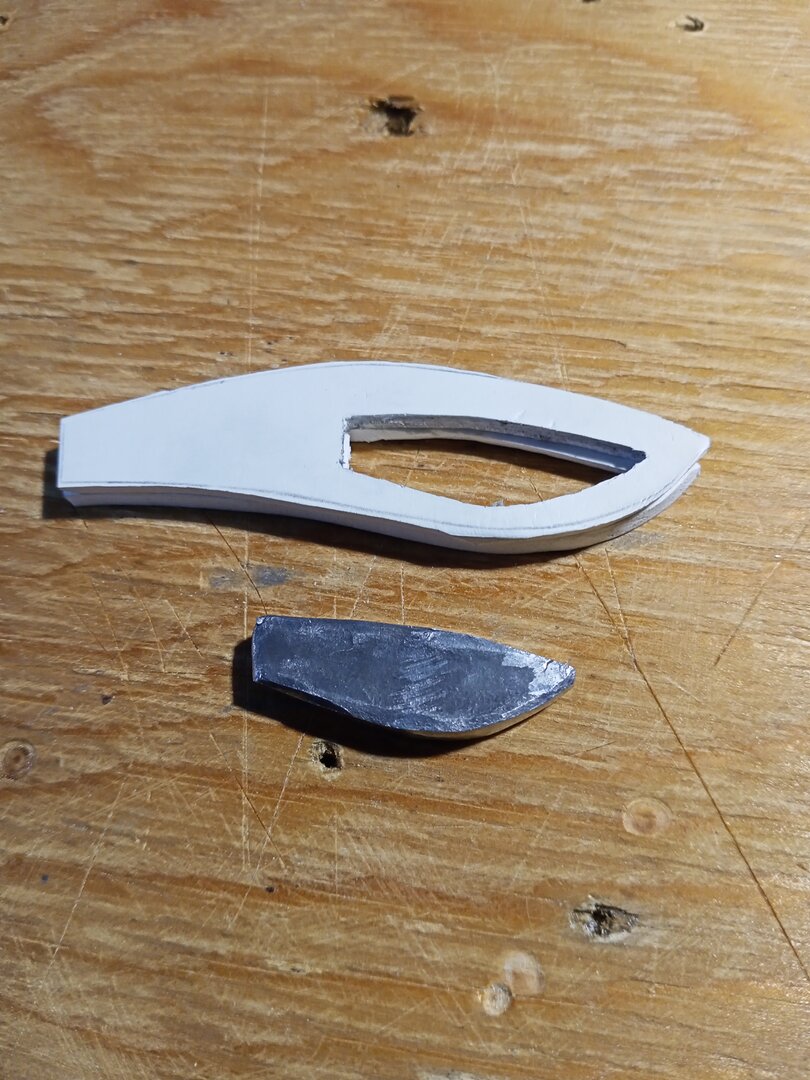 В двух средних заготовках вырезаем окна под отгрузку, вырезаем свинцовый груз, склеиваем заготовки и вклеиваем груз.