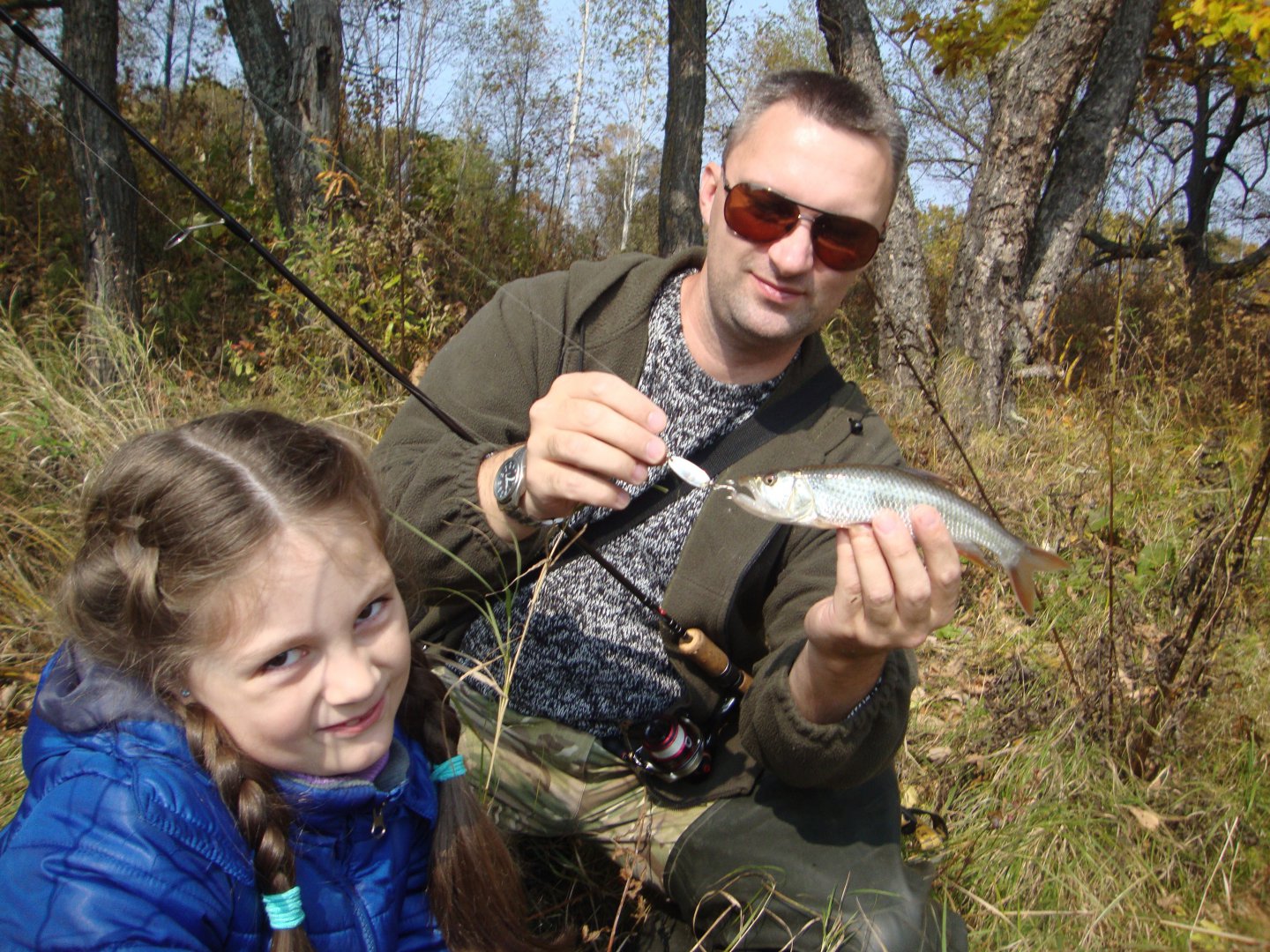 Просто на природу выбрались. Полчаса покидал спиннинг, но кроме большеротов ничего не поймал. А попадались здоровенные экземпляры.