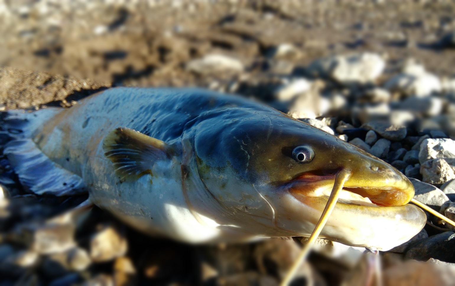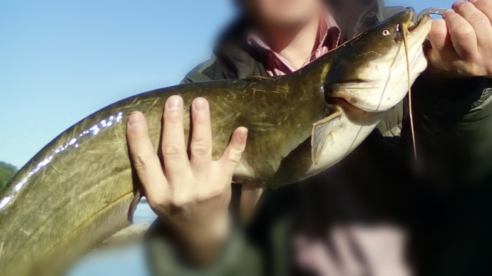 Нет, не около дома. Не так чтобы далеко, за городом...Не расчитывал на щуку. Заехал на это место погонять троегубов после неудачной охоты на верхогляда. Сом порадовал своей упорностью. Вроде все, уже у берега, а он назад в глубину давит. Шнур 0,8, торопиться нельзя, чиркнет об камешек...фрикцион ослабил, т.к рывки весьма резкие. Даром, что мал. Позитива подарил о-го-го.