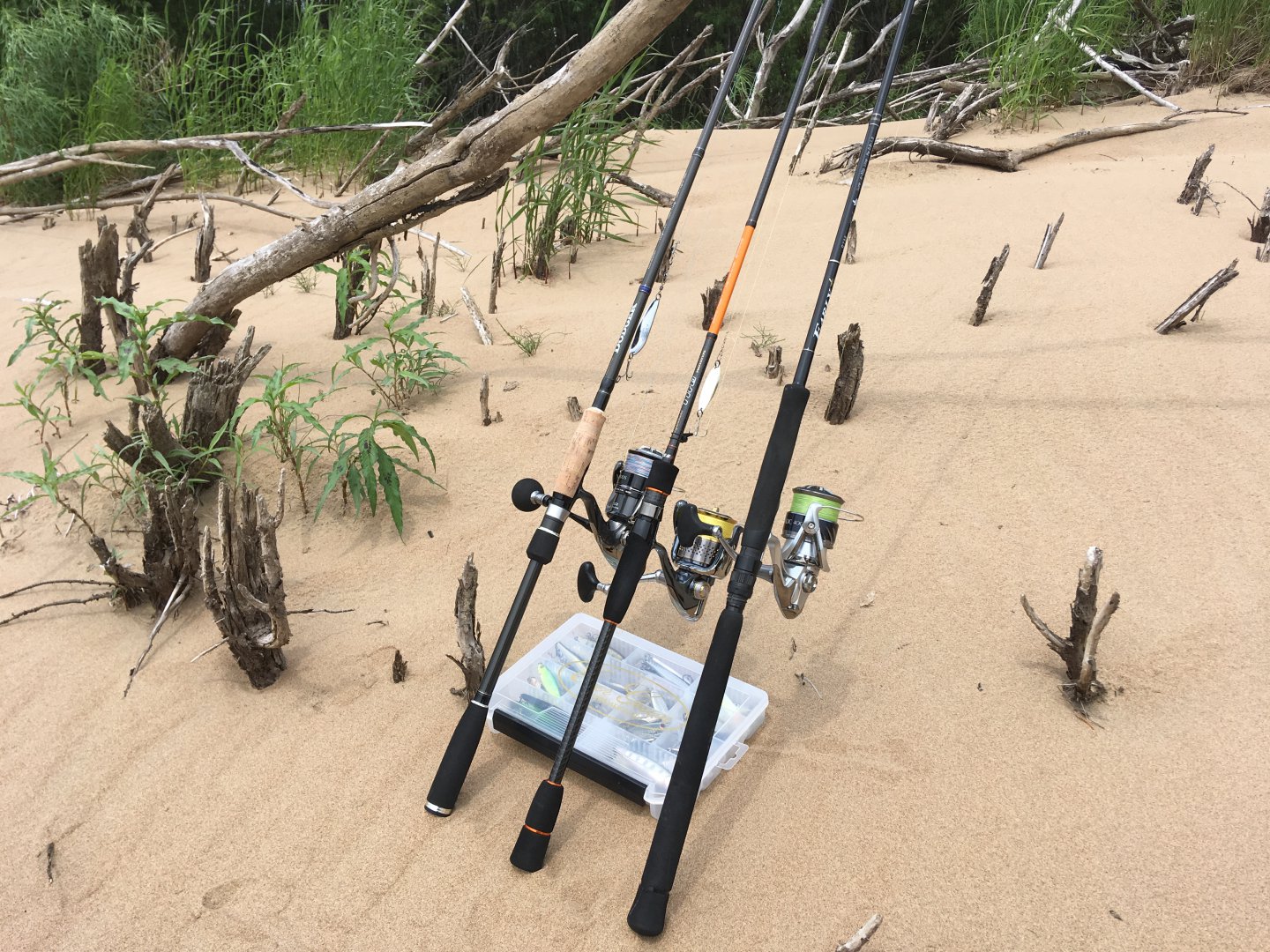 Ну да ладно...После работы прокатились на бережок пошвырять Блэкхолскими палками...Алексей недавно обновил свой комплект для Амура...надо раскидывать хлыст...