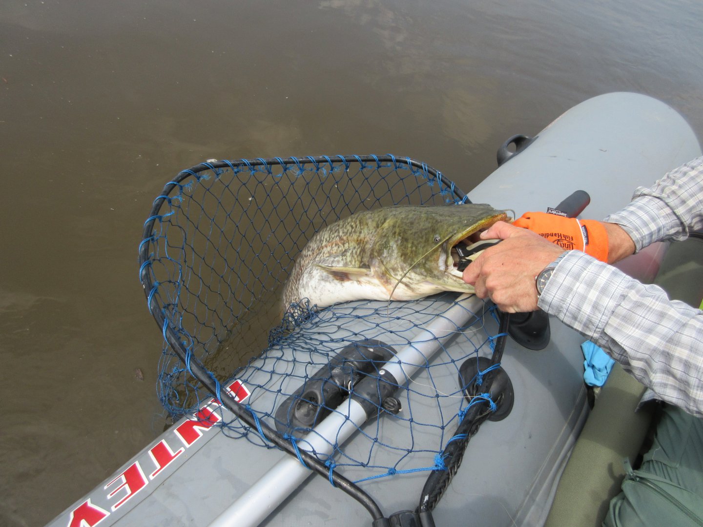 Утро следующего дня выдалось ветреным и дождливым, но не возвращаться же домой. Быстро завтракаю и еду на поиски рыбацкой удачи. А удача-то в отличие от погоды оказалась на моей стороне. Несколько забросов – и первый рыб, смотрящий вверх, в подсаке.