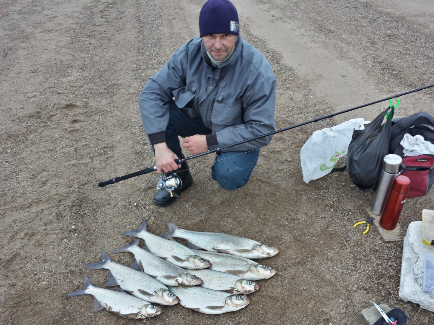 Погода в норме, солнечно, разве что ветер 4-5 м/с систематически менявший свое направление несколько портил очередной теплый ноябрьский денек.. Но это по сути не ветер как таковой, бывало и гораздо хуже, да и снасти с собой соответствующие, как раз для таких вот дел.. С приманками мельчить не стали, в ход сразу пошло проверенное железо весом от унции и выше.. В течение пары часов была абсолютная тишина.. Складывалось впечатление что рыба с наступлением ноября вообще исчезла как биологический вид, но кружившие вдали и кормившиеся чайки все таки вселяли надежду что малька рано или поздно притянет к берегу, а следом за ним придут и пастухи.. Решаем прерваться на некоторое время, передохнуть, да и чаи погонять чаи с конфетами прихваченными из дома.. Клевая тема, особенно когда не клюет..