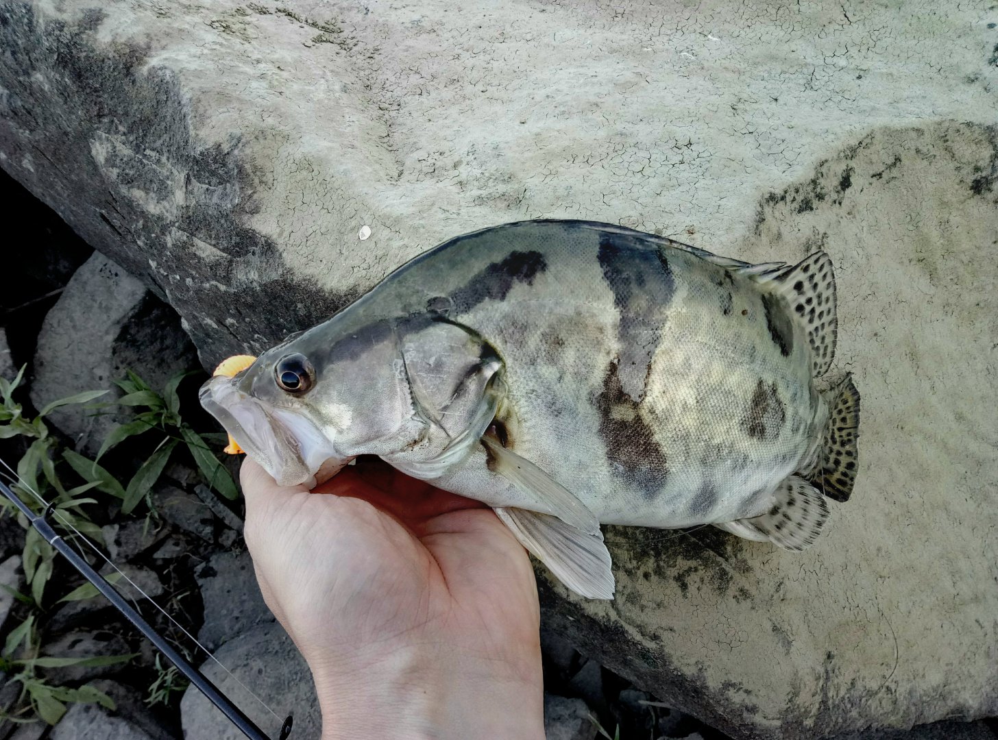 Солнце начало припекать по настоящему, по летнему, но рыба продолжала атаковать приманки.. В очередной раз убедился что дальность заброса имеет значение.. Стоило только послать приманку на нужную дистанцию, как тут же следовала поклевка.. А их было не мало.. Многие рыбы в кадр не попали, по причине нежелания портить рыбалку напарнику который находясь на приличном расстоянии от меня тоже не скучал без дела подобрав свой ключик к капризничавшей доселе рыбе.. Так продолжалось в течение полутора часов.. На одном из забросов на выбросе следует мощнейшая поклевка, размашистая, как будто кувалдой треснули, и после подсечки становится понятно что подсело че то неплохое.. Фрикцион приятно визжал сигнализируя о том что рыба не собирается сдаваться без хорошего боя.. Вываживание заняло порядка 5-7 минут, после чего пришлось просить соседа расположившегося рядом со мной помочь с подсаком.. Ну и заодно сделать фото..