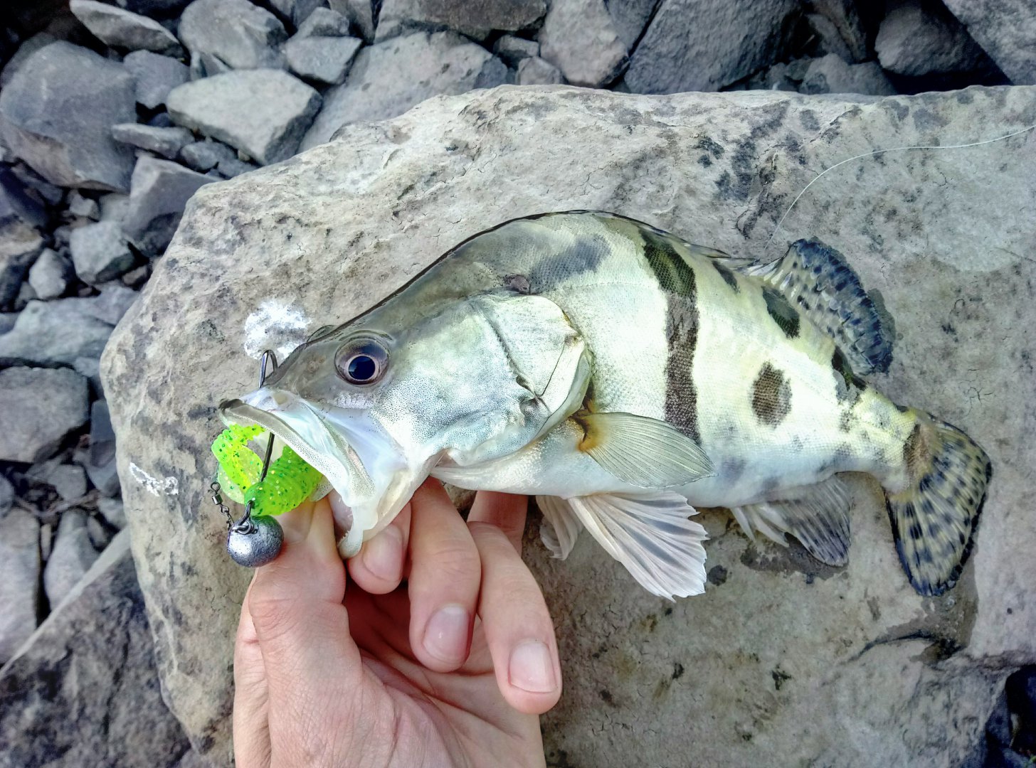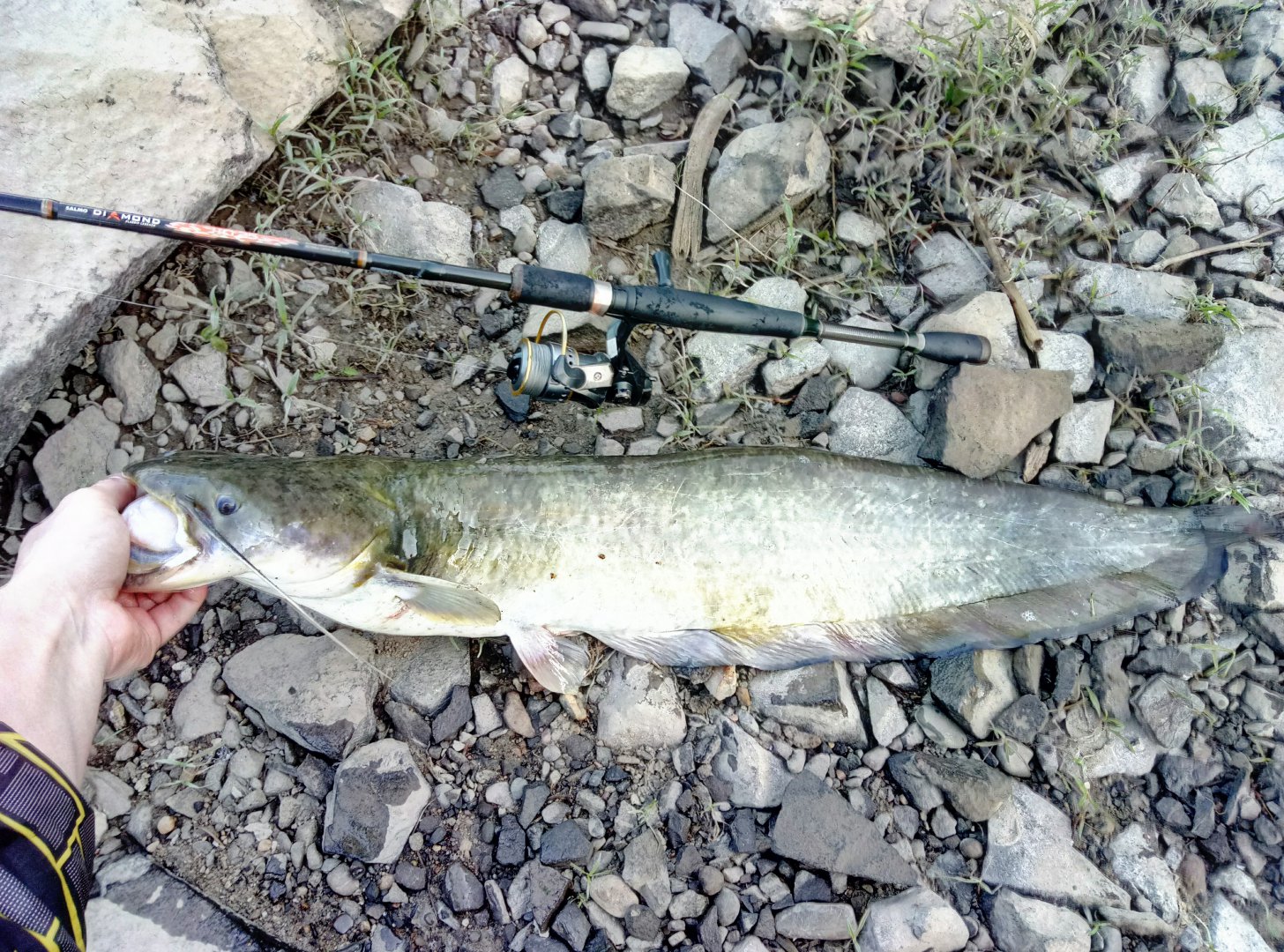 Наскоро перекусив и обдумав план дальнейших действий, я пришел к мысли что самое время пустить в ход пару приманок из разряда "Top Secret".. Что собственно и было сделано после получасового послеобеденного отдыха.. И результат не заставил себя ждать.. Через несколько забросов следует поклевка, и очередной хвост на берегу..