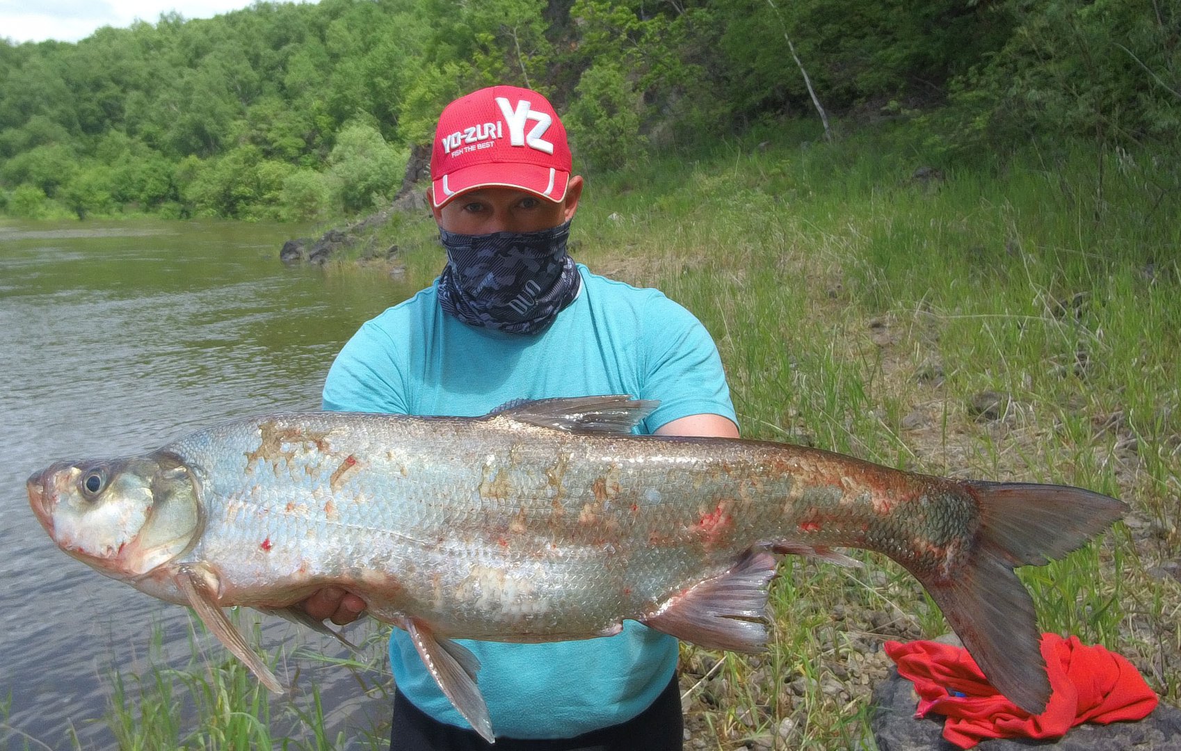 Сняв с этой точки несколько хвостов делаем вывод что рыба очень неактивная. Решаем идти на другую точку где надеемся шансов хорошо половить будет больше. А мошкара все это время просто пытается нас куда-то унести. Ни ветерка, жара, а ей это самое то. Идем на следующюю точку, встаем и пробуем ловить. Заброс-тычок, заброс-тычок, опять заброс-тычок но не берет. Меняем вес приманок, заброс-тычок, поклевка-сход, да чтож такое. Пробую приманку вообще не вести после заброса а даю ей свободно парить на течении и бац сел