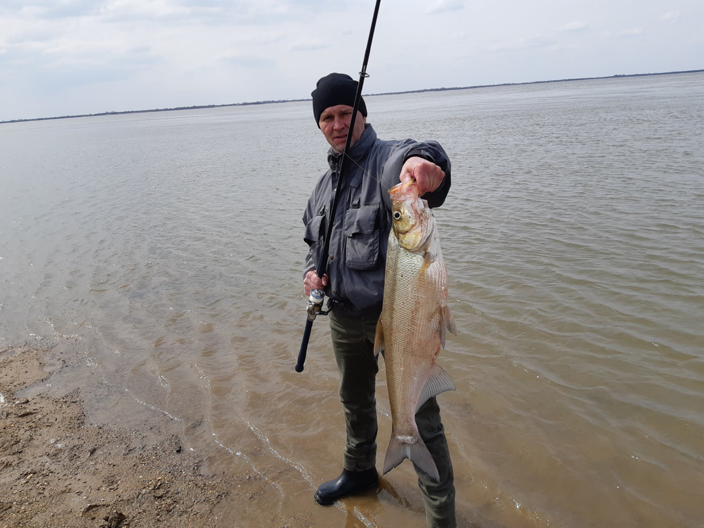 На днях вырвался на берег пошвырять пилькерочки....размяться так сказать после зимней паузы)))) воды довольно много для этого периода поэтому прихватил на берег 335сантиметровую катапульту до 45гр....пошти без надежды.....просто пошвыряться....как оказалось рыба есть,она активно кушает....несколько экземпляров подержал и довольно неплохих.один потянул на 4005гр.согласно показаниям весов соседа любезно предоставив девайс....