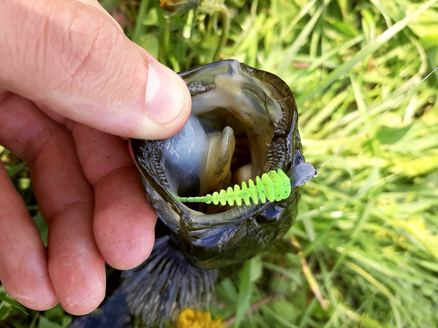 . Фигня, хватаю спиннинг и, как тот горный козел, горными тропками, да по камушкам, обкидываю прибрежные струи, затишки и обратки, а ответа никакого, хорьком однако попахивает. Возвращаюсь к машине, туда где все слипуются, утолив голод решаю дальнобойным спином прокидать русло, цепляю кастмастер и ... и нифига, ладно, надо опробовать недавно сделанные воблера, хоть не на уловистость но на предмет игры, купаю их значится, играюсь и тут кааак влупил кто-то, желтощек !!! А вот сфотать забыл от радости. Ура, энтузиазма прибавилось, вижу что еще один бьёт недалеко, продолжаю кидать, не берет. А водичка чистая, прозрачная видно как стаи мальков резвятся, и тут замечаю, что много погрызанных мальков, прям куски мяса у некоторых вырваны, значит хищьник рядом, только странный какой-то, малька сожрать не может.