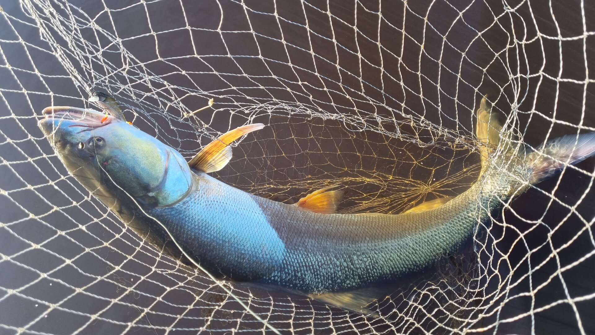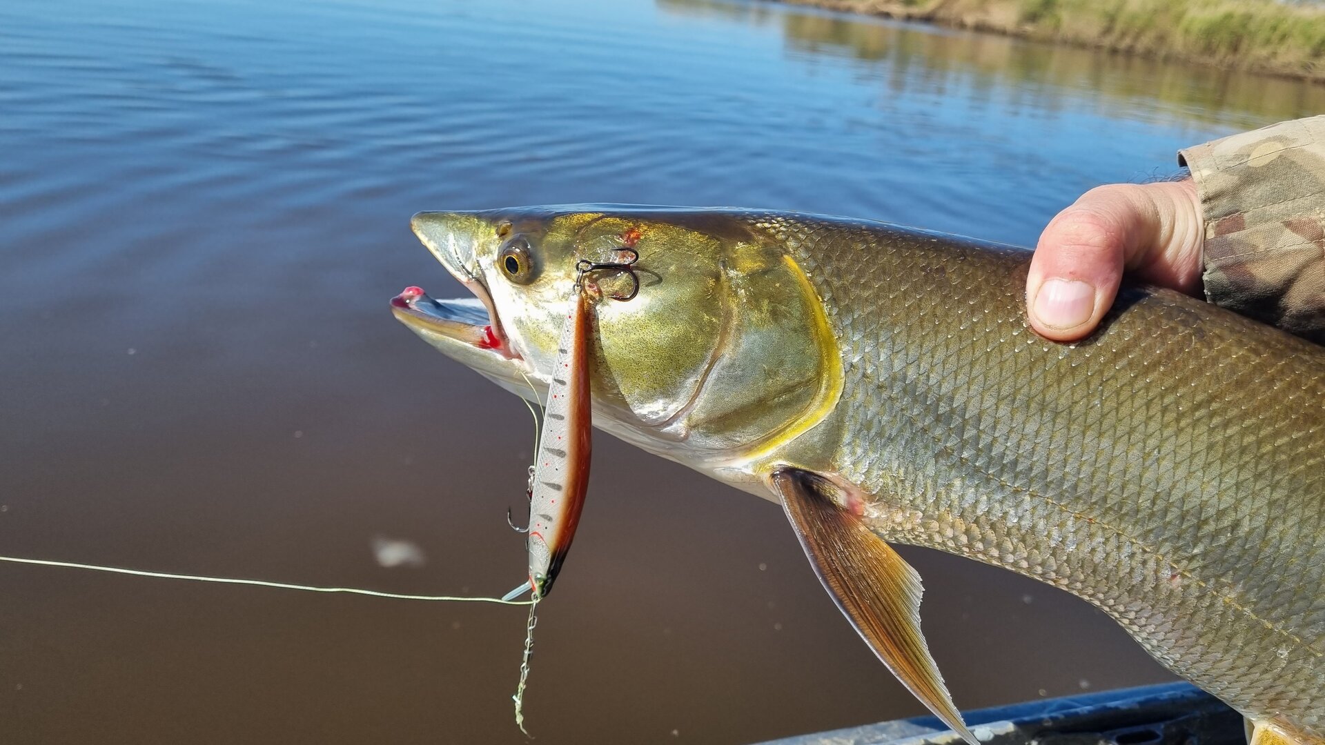 Помимо щук попался и небольшой сом, которого я поймал "вприглядку". Увидел его стоящим прямо под берегом, 5-6 забросов блесны под нос сому и он не смог устоять перед соблазном перекусить моей блесной.