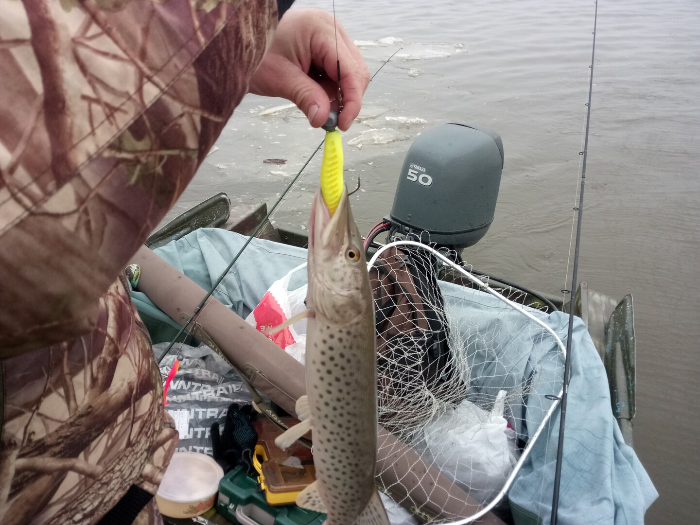 Сегодня уже точно закрылись, с утра штиль благодать, но мешал лёд, потеплело и забереги видимо посрывало, поймали три шнурка и на том поде спасибо, главное время провели в удовольствие.