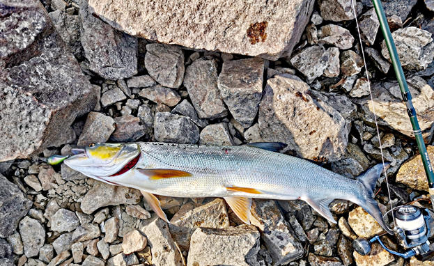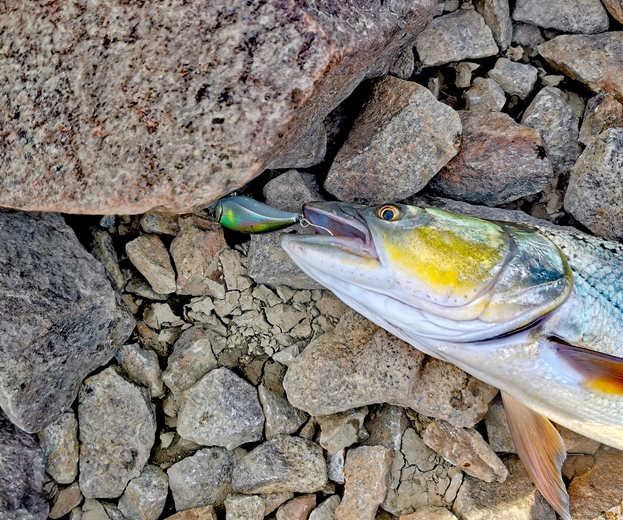 Открыл сезон жидкой воды с поимкой небольшого красавца амурского желтощека. Целью рыбалки был верхогляд, в этом месте перекат с перепадом в глубокую яму, любимое место охоты этого хищника. Основными приманками были пилькеры с монтажем из двух-трех стримеров, также использовал джиг. Вариации стримеров и силиконовых приманок успеха не приносили, верхогляд упорно отказывался на них реагировать. Решил поставить тонущий воблер и на первом же забросе получил мощную поклевку желтощека. Несмотря на свой небольшой размер, этот хищник дал настоящий бой при его вываживании, палка тестом до 65 гр. порой сгибалась на его сопротивлении. Борьба длилась несколько минут, желтощек был припаркован и после небольшой фотосессии отпущен в родную стихии бодрым и невредимым!