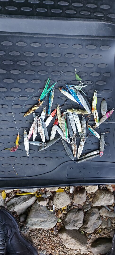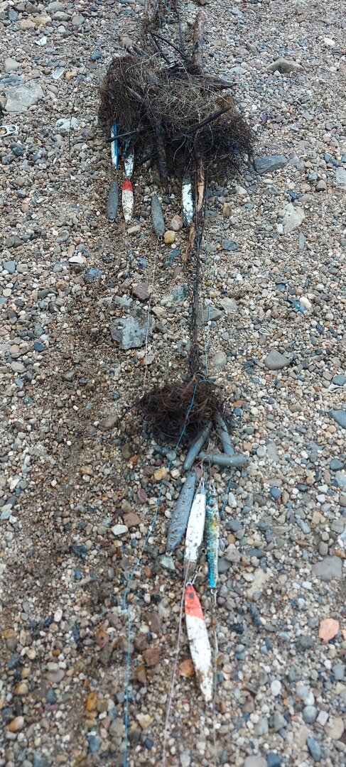 Крепкий у вас шнур стоит на катушке - однако)))Выбрался сегодня на берег. Рып ловил я так себе, мелкий верхогляд и "монголец" и того не много. Но была пойман занятая горяга... Импровизация Новогодней ёлки рыболова. Ну или идол для поклонения с прилагаемыми подношениями.