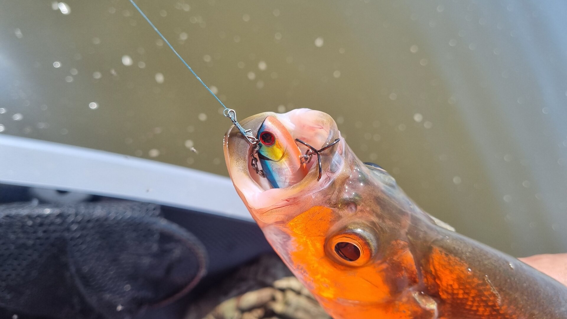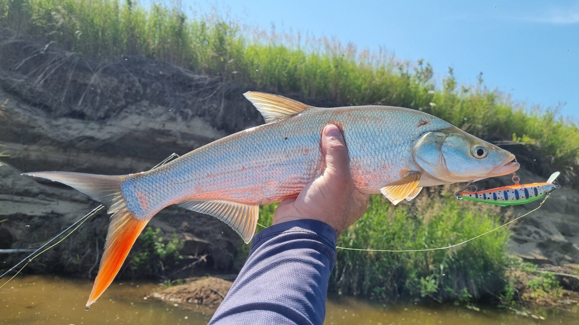 Очень много крупной аухи , краснопера, верхогляда . Ауха нерестится , но приманки не пропускает