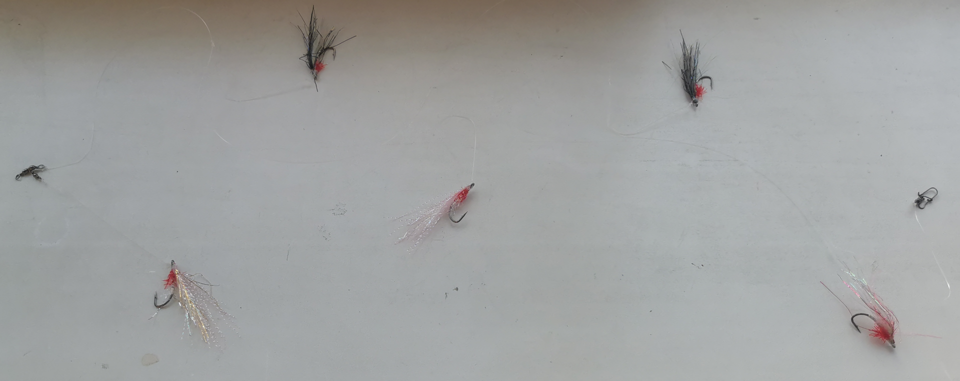 Тоже поделюсь рабочими мухами. В том году работали мальки из люрексовых трубочек и бактейла с синтетикой. Мальков с трубкой ставлю за пилькером, а бактейлов перед. Одинаково хорошо берет