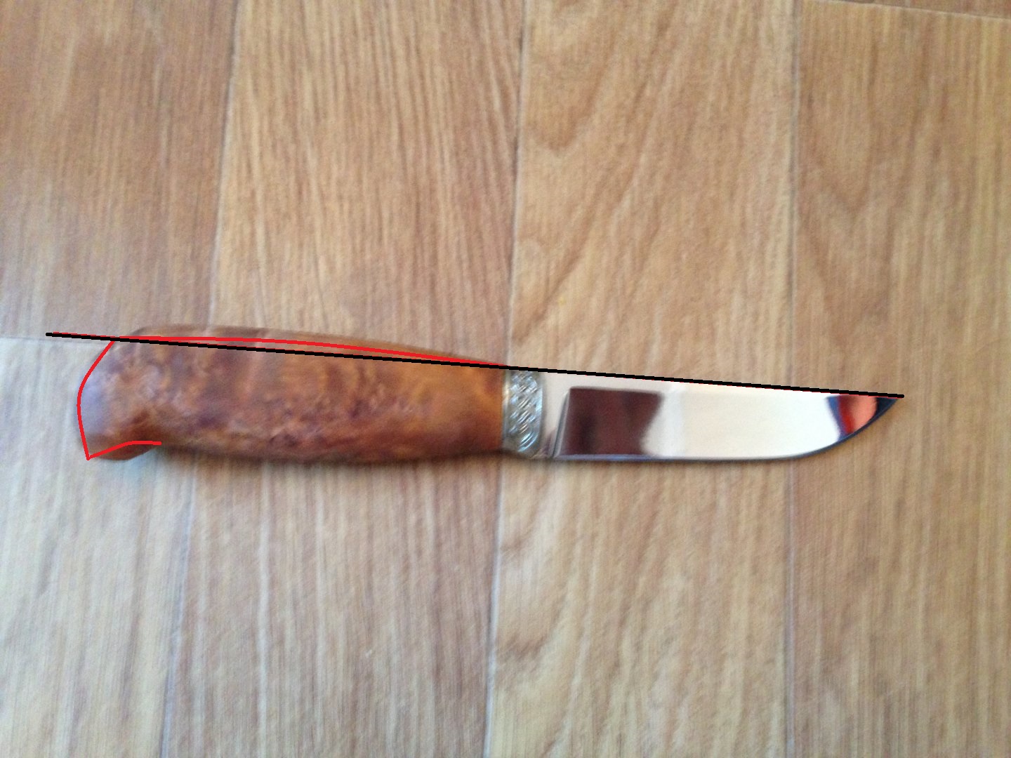 попробую с верху убрать чуть чутьЕсли честно, тут надо надо треть рукоятки стачивать, чтоб нож выглядел не как бумеранг