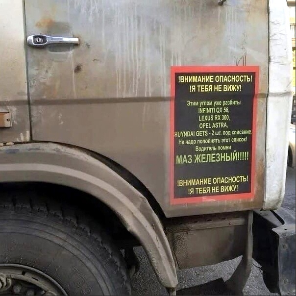 Японцкие грузовики в своей большинстве оборудованы таковыми + допзеркала.А, по уму, и безопаснее было б, если в месте этой гордой "таблички сбитых мессеров" сделали видовое ОКНО, как во многих грузовиках яповских, например. Не наш путь? Ведь вместо неуважаемого автомобиля в том углу может оказаться пешеход и гордиться будет уже нечем.