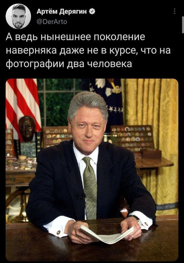 Прдразумевается М. Левински под столом. Если считать её живым человеком, то...