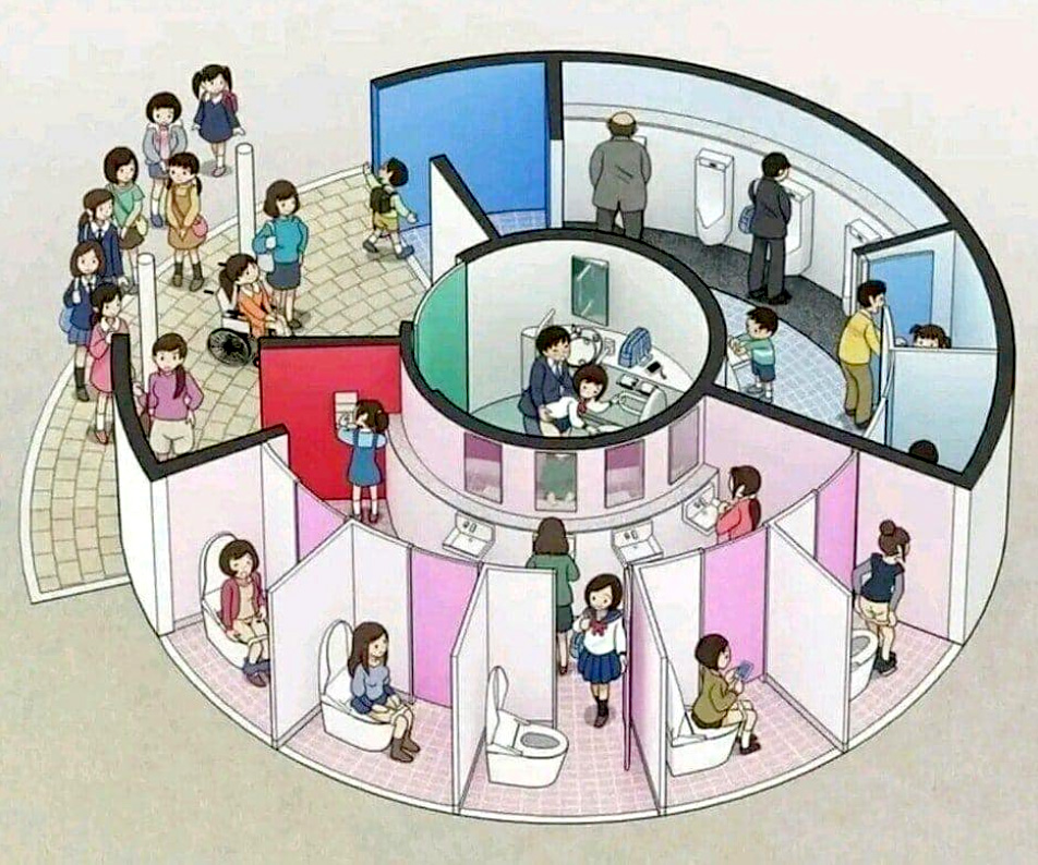 Идея круглого общественного туалета в Японии, позволяющая максимально использовать полезную площадь.