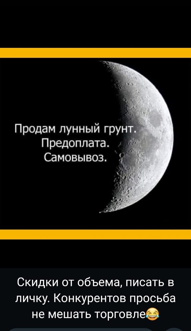 Ты себе уже сколько прикупил?С противоположной стороны Луны грунт дороже на 20%, поскольку не подвергался разрушению от УФ-излучения.