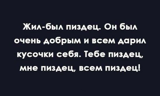 «…Нашему народу даровано небесами ощущение пиздеца.Нет аналогов этому слову в других языках и никакие синонимы не спасут. Всякая русская мысль если и не упоминает прямо, то имеет его в виду. В начале было ощущение, то гнетущее и одновременно восторженное чувство, которому уже позже подобрали такое прекрасно точное слово - ПИЗДЕЦ.