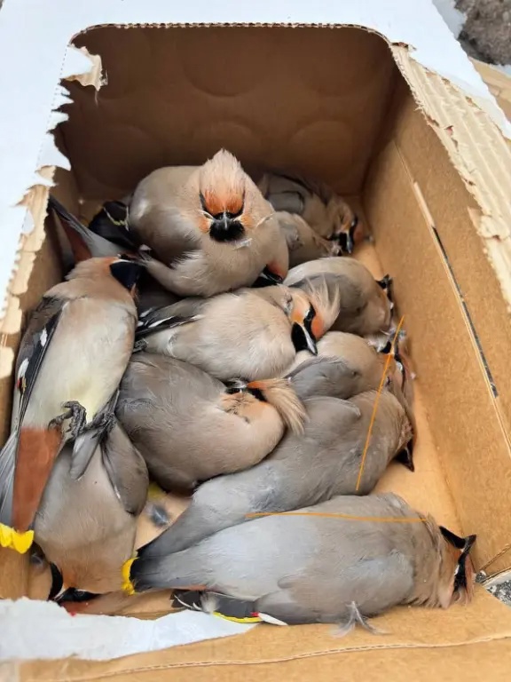 Изверги! Могли бы по жменьке ягод в коробку, на опохмелку, положить...Птиц складывают в коробки и относят в лес, чтобы они могли отдохнуть и прийти в себя.