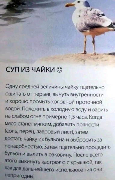 Мы баклана ели. Нормальный баклан. Главное снять шкуру с желтым жиром под шкурой. Вся рыбья вонь от шкуры.Ето не прачайку. Ето прабаклана.