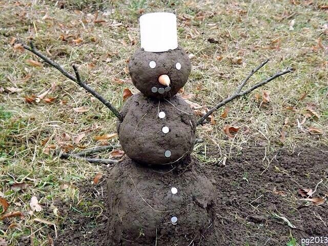 Круто! А интересно: вместо шапки у него туалетная бумага, вроде... Из чего же он тада?Снеговичок, блин