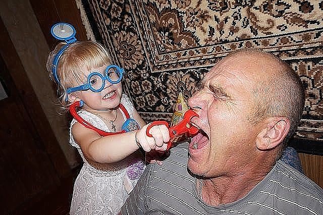 Такая же история - кто не успел спрятаться, тот попал.Бабушка подарила внучке набор доктора.