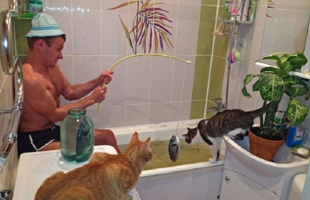 Про первое фото понятно- молодой Куклачев дресирует кошек сидя в ванной, типо на рыбалке...видимо готовит новый цирковой номер...