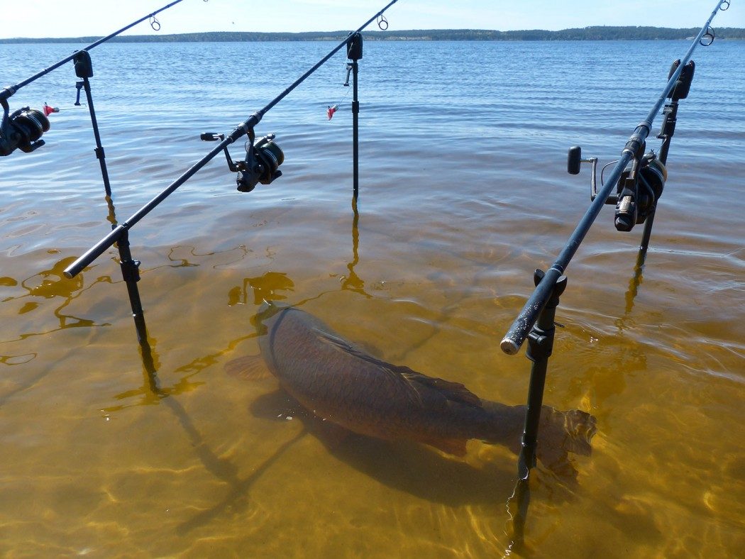 У меня был очень похожий случай. За ночь вода прибыла, спиннинги оказались в воде и на утро я не поверил своим глазам, около них (спиннингов) тёрся здоровенный сом, даже усами шевелил. Я тогда долго его наблюдал, но он меня увидел и уплыл. Думаю его привлёк садок с мелочью, бывший рядом со спиннингами.