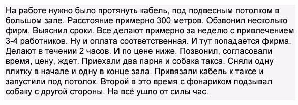 Надо было что-то делать. Но что? Над проблемой кто угодно ломал бы голову, но только не Вуд. Его взгляд упал на гуляюшую поблизости кошку, и решение пришло тут же. Вуд схватил кошку и, незвирая на ее отчаянное сопротивление, засунул в трубу. И тут же заткнул отверстие. Теперь уже кошке предстояло искать выход из положения. В другом конце трубы брезжил свет, и кошка поползла к нему. Протискиваясь к свободе, она собирала шерстью паутину со стен темницы.