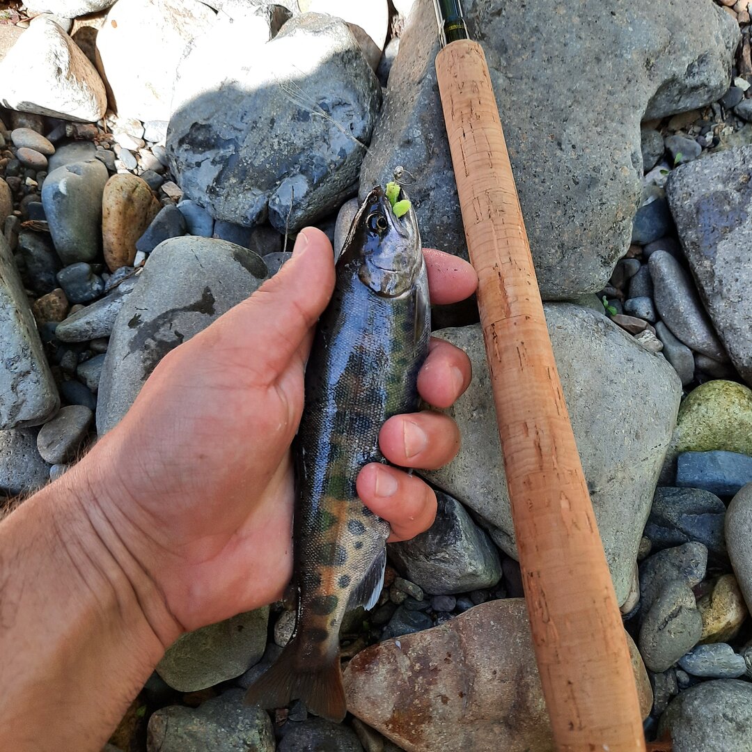 . Сейчас для горной рыбалки использую лёгкое маховое удилище японского бренда длинной 4м, с быстрым строем.
