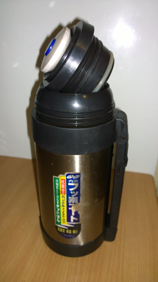 Покупал его в Японии в 95 году, объем 1,7 литра, Корпус и колба металические. Служил 18 лет верой и правдой, падал не раз. Сделан для внутреннего рынка япии поэтому названия не знаю, но наверное круче по качеству я не видел. Чё могло случиться?