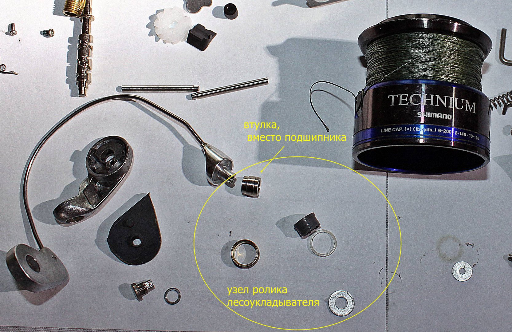 Добавил шайбочку на главную пару - немного уменьшил люфт, кстати стараюсь добиваться нечто среднее между приемлемым люфтом и падением ручки под своим весом.
