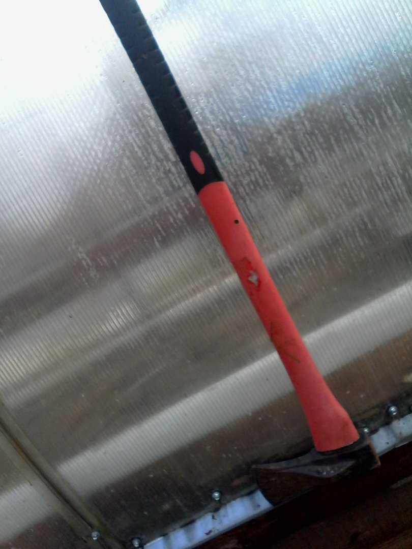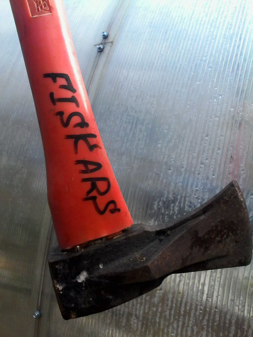 Первый раз вижу на резину топор насажен . Видел отчим делал оцинкованное железо снизу накладывал , тоже не плохо получается .