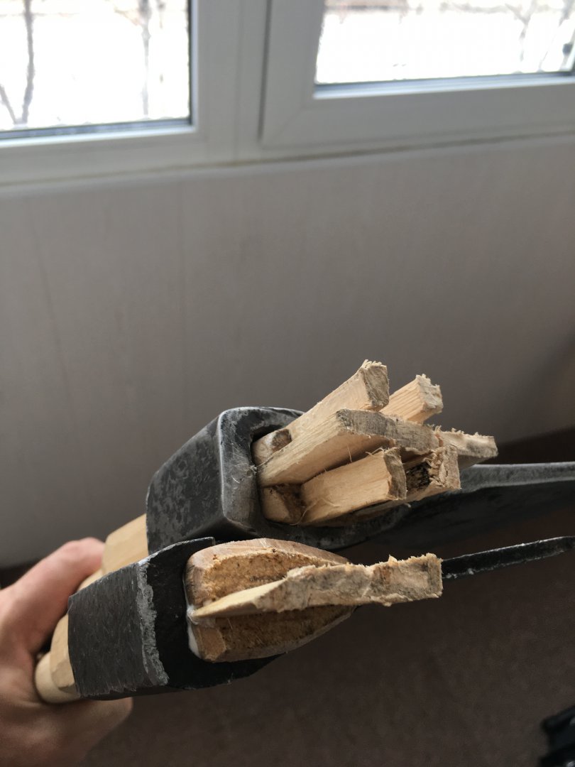 Железка(топор) дефективная, второй год с ней борюсь. Прошлый раз топорище от клина лопнуло.