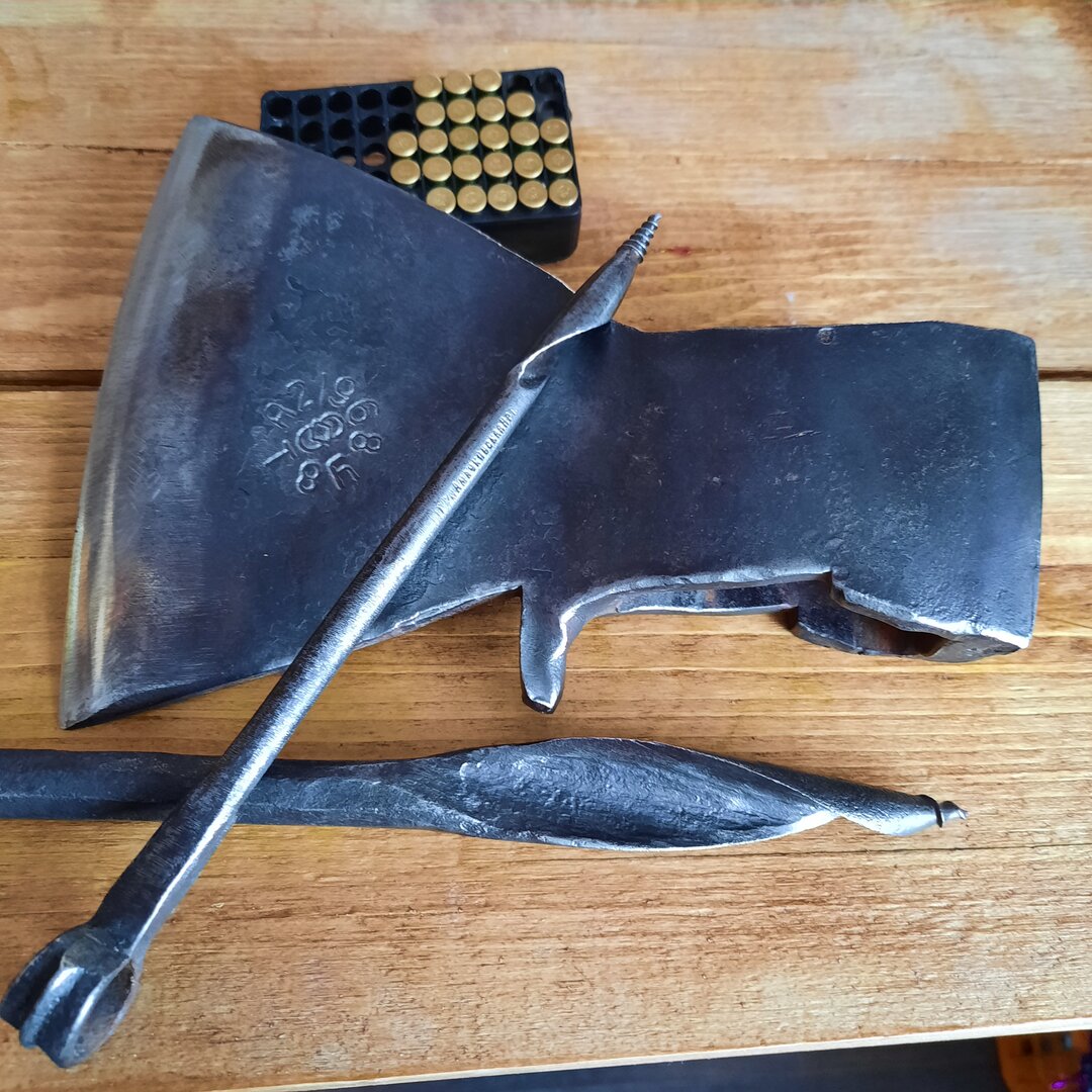 В пятницу был в Переясловке там в Ангаре весят топоры ( типа ТВ у меня такие есть вполне сносные ) и меньше чем за 900 .Приехала посылка, в том числе топорик 68 года,Ижевский сталеделательский завод, сталь У8 тип А2, звонкий, за 900 рублей сейчас даже китайский пластилин не купишь, буду одевать) Буравчики ещё кованные артелевские хоть в музей)