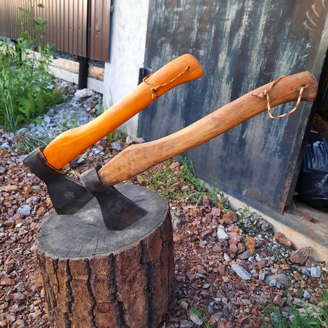 Вот мои трудяги, справа Хускварна ранняя, слева на заказ кован топор